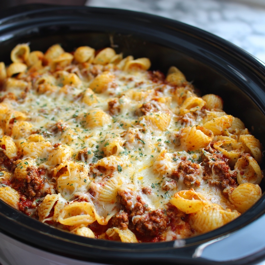 This Homemade Crockpot Ground Beef Pasta is a comforting, easy-to-make one-pot meal perfect for busy days. Ground beef simmers slowly with tomatoes, Italian seasoning, and pasta in a crockpot, creating rich and hearty flavors. Finished with creamy heavy cream and a blend of mozzarella and Parmesan cheese, this dish is a delicious family-friendly dinner with minimal hands-on time.