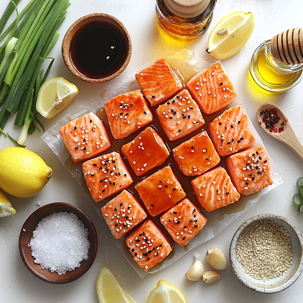 - Serve and garnish: Remove skillet from heat. Sprinkle chopped green onions and sesame seeds over the salmon bites. Serve immediately, ideally over steamed rice or noodles for a wholesome meal.