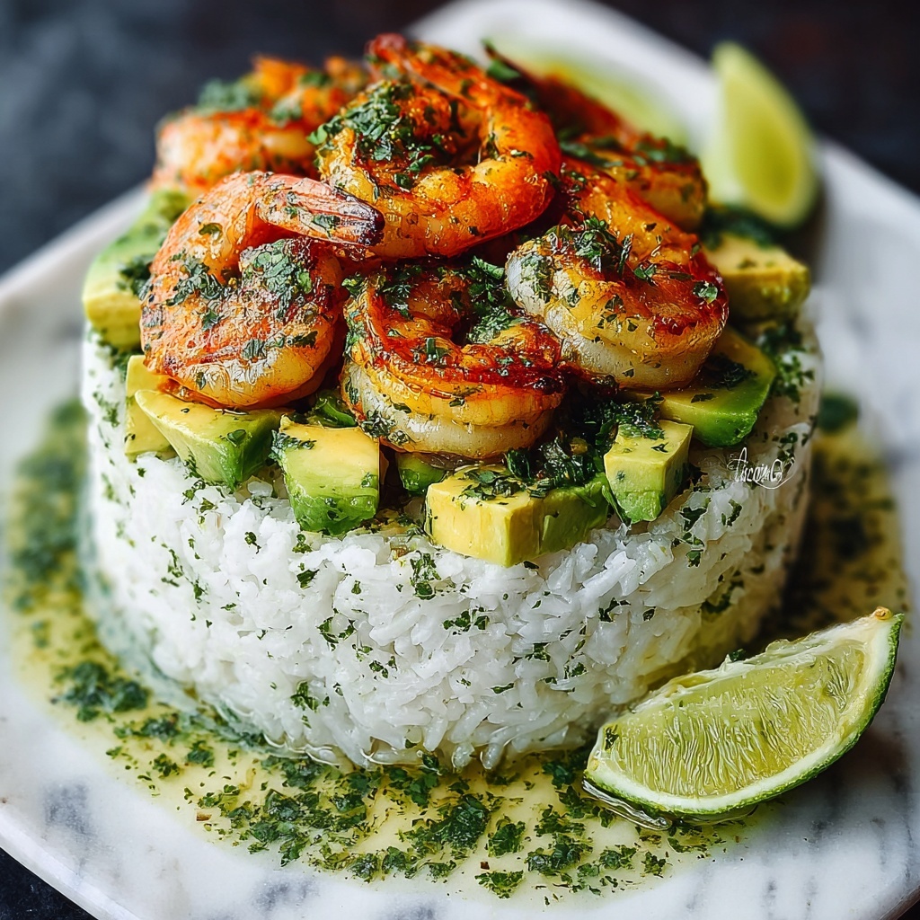 A vibrant, flavorful Honey Lime Shrimp & Avocado Rice Stack featuring succulent shrimp cooked in a zesty honey lime sauce, layered over warm jasmine rice and fresh avocado. This quick and easy stovetop recipe is perfect for a healthy, gluten-free main course packed with protein and freshness.