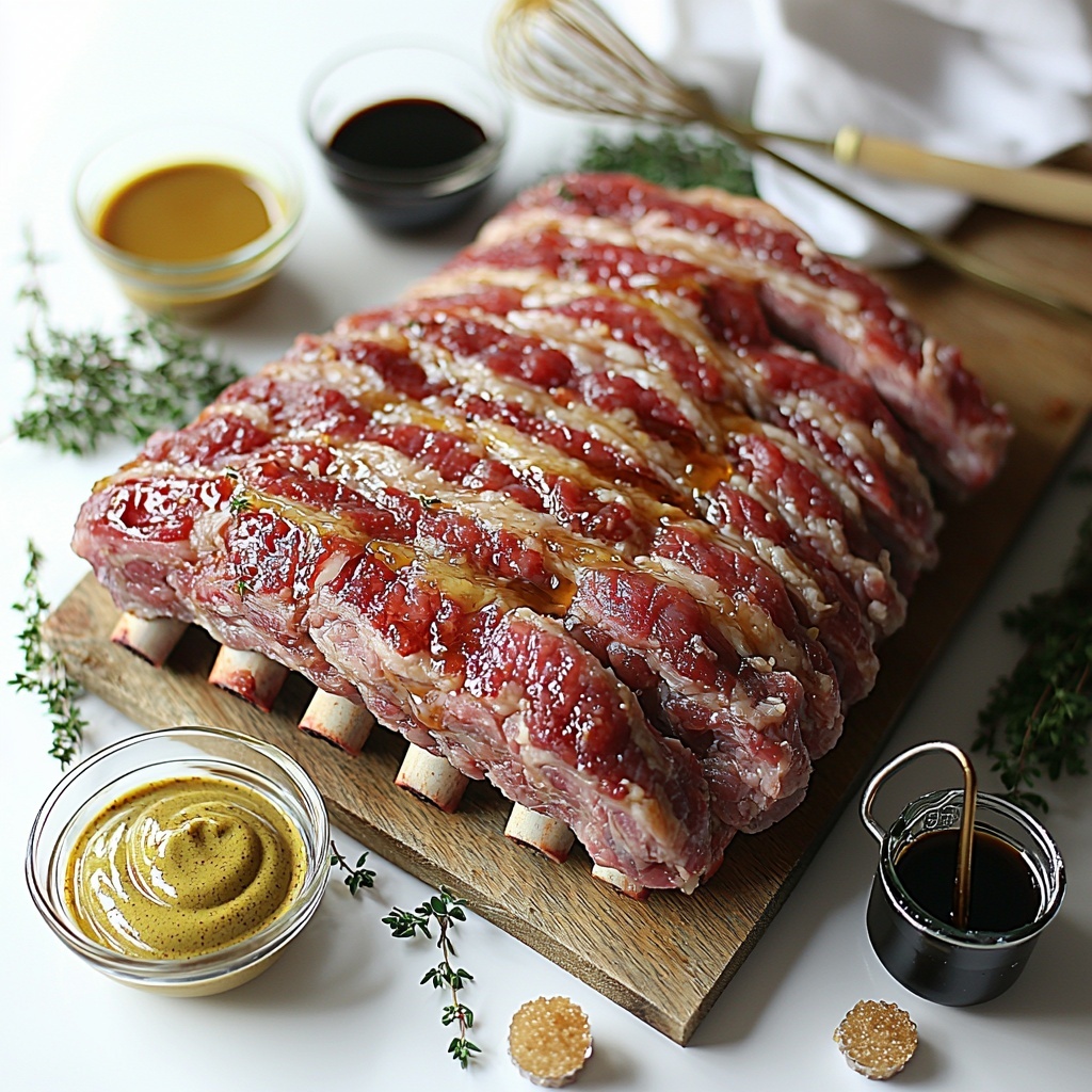 These ingredients come together to form an irresistibly flavorful glaze while ensuring the ribs stay juicy and tender. Each item plays a vital role, from the tang of the mustard to the deep sweetness of the brown sugar and honey, rounded out by the subtle acidity of balsamic vinegar.