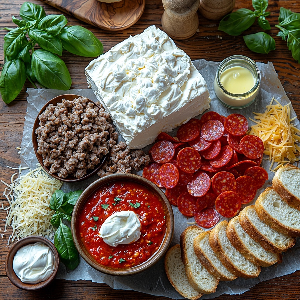 This Hot Honey Pepperoni and Sausage Pizza Dip is a crowd-pleasing appetizer combining creamy layers of cream cheese, tangy sour cream, and parmesan with savory sausage and pepperoni, topped with melty mozzarella and a drizzle of sweet and spicy hot honey. Served warm with garlic butter crostini, it’s perfect for parties or game day snacking.