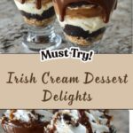 Indulge in these luxurious Irish Cream Desserts, perfect for a delightful treat. Featuring a rich blend of Irish cream liqueur, whipped cream, cocoa, chocolate chips, and crushed cookies layered to create a creamy, decadent dessert that’s ready in just a few hours.