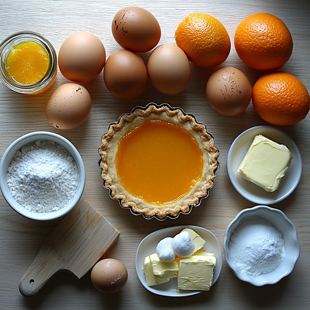 Everything in this recipe is wonderfully straightforward, proving that simple, quality ingredients can create magic. Each component plays a crucial role, from the fragrant orange juice that bursts with freshness to the smooth eggs that help the filling set perfectly, making this tart a true standout.