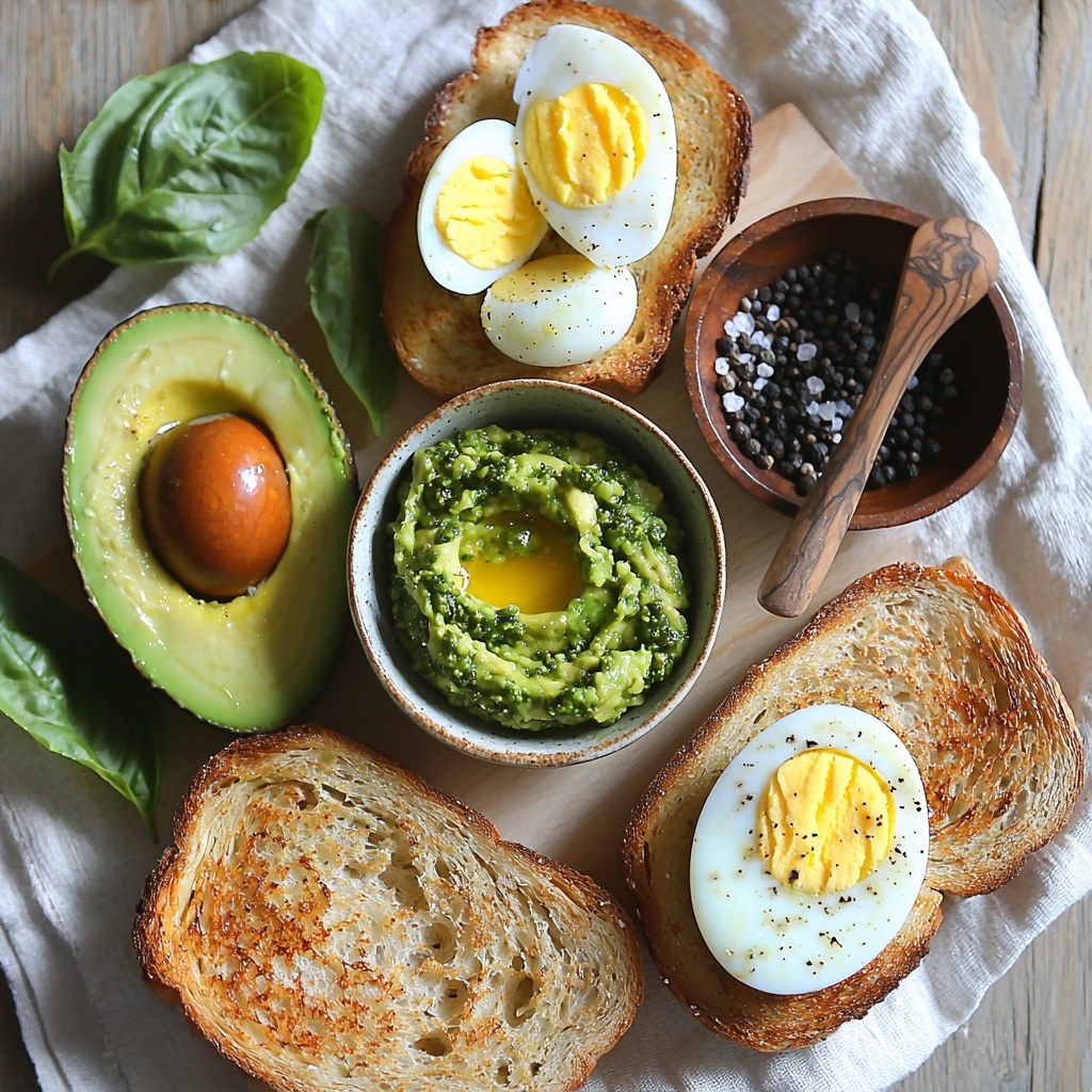 To elevate your Jammy Egg, Avocado & Pesto Toast Recipe, try sprinkling on some toasted pine nuts for a nutty crunch, a few chili flakes for a spicy kick, or some microgreens for fresh, peppery notes. A dash of lemon zest or squeeze of fresh lemon juice can brighten up the whole toast just before serving.