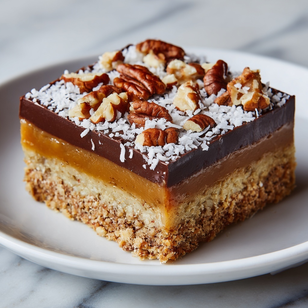 It has a rich, sweet, and nutty flavor with a creamy, custard-like filling that’s textured with coconut, pecans, and graham cracker crumbs. The brown sugar and butter give it a caramelized sweetness that’s absolutely irresistible.