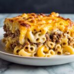 This Mac Cheese Meatloaf Casserole is a comforting, hearty dish that combines savory seasoned meatloaf with creamy macaroni and cheese, all baked together for a deliciously cheesy and satisfying meal perfect for family dinners or gatherings.