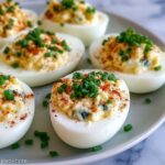 Million Dollar Deviled Eggs are a classic appetizer elevated with a creamy, tangy filling made from a rich combination of mayonnaise, cream cheese, Dijon mustard, and fresh chives. Perfectly boiled eggs are filled with a smooth, flavorful yolk mixture and garnished with paprika and extra chives for an elegant presentation. These deviled eggs are a crowd-pleaser at parties and gatherings.