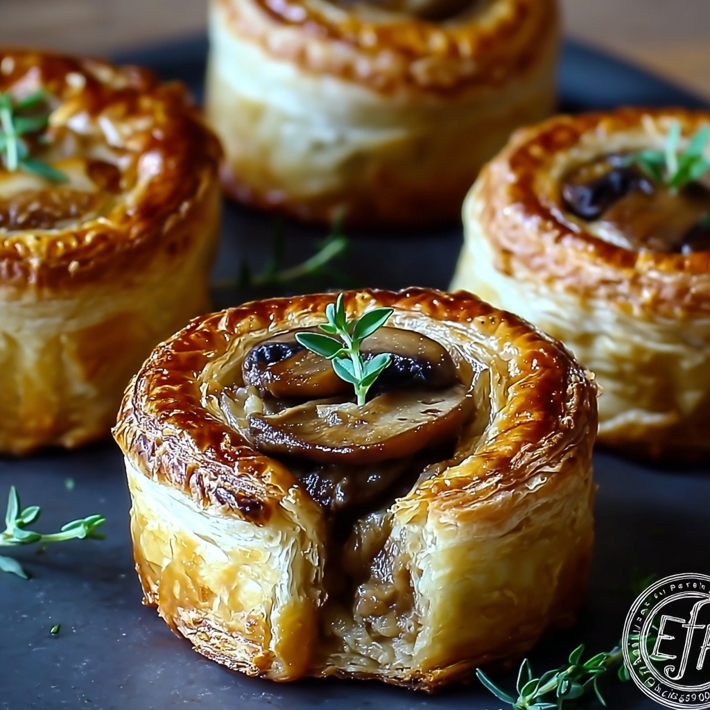 - Egg wash and garnish: Brush the tops of the puff pastry with the beaten egg to encourage a golden, shiny crust. Sprinkle fresh thyme leaves on top for an aromatic garnish.