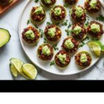 While your mini tamale bites bake, prepare the luscious avocado crema. Combine the avocado, Greek yogurt, water, garlic, salt, and fresh lime juice in a small blender or food processor. Puree until smooth and creamy. When your tamale bites have cooled slightly, spoon 1 to 2 teaspoons of this bright, tangy crema onto each one. This topping elevates the flavor and adds a creamy finish that makes every bite unforgettable.