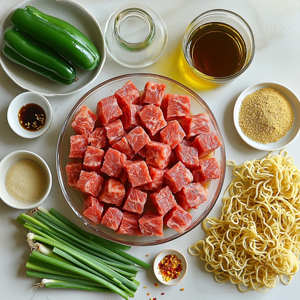 - 1 green bell pepper (sliced into thin strips): Adds a sweet, crunchy contrast to the savory beef.