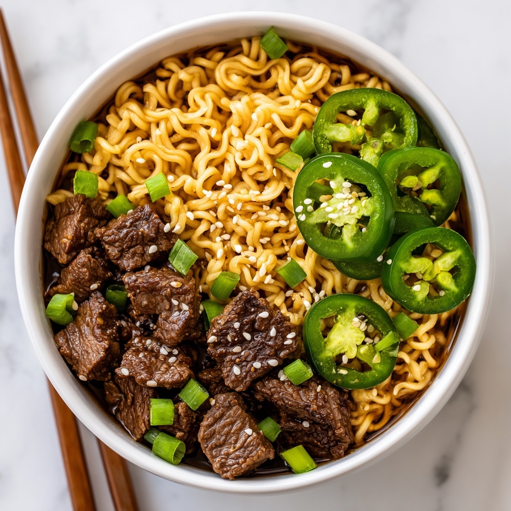 For a fun twist, serve this stir-fry in large lettuce cups to turn it into a handheld delight. Alternatively, plating it over steamed jasmine rice instead of ramen can create a comforting bowl reminiscent of traditional Mongolian beef dishes while keeping the unique stir-fry flavors intact.