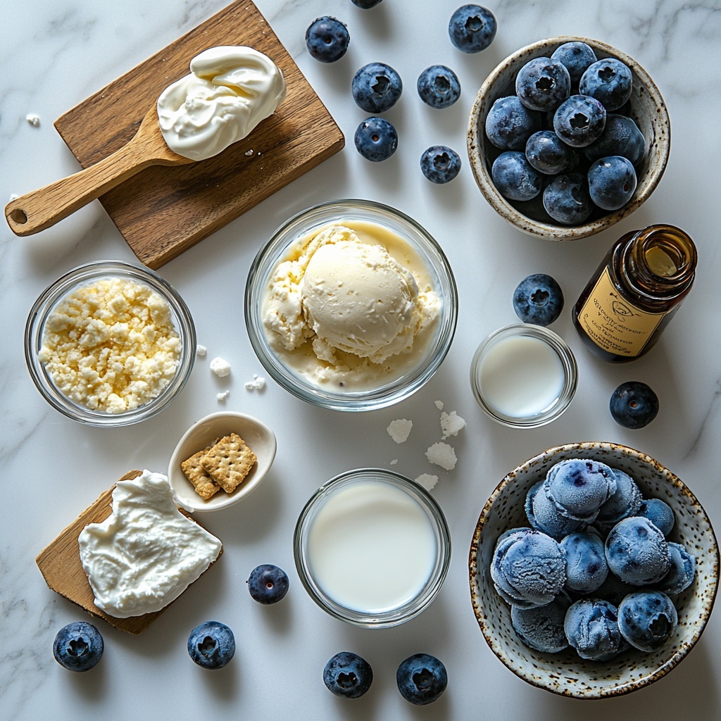 Gather these simple but essential ingredients to create the magic. Each one plays a crucial role: from the creamy texture to the fruity sweetness and that unmistakable cheesecake flavor, blending together to bring out the best in this Ninja Creami Blueberry Cheesecake Protein Ice Cream Recipe.