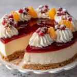 The No Bake Cranberry Orange Cheesecake Recipe is an absolute showstopper that brings together the bright zestiness of fresh oranges and the tart burst of cranberries in a luxuriously creamy cheesecake. This dessert is perfect for those moments when you crave something elegant without the hassle of baking, offering a delightful texture contrast between a crunchy graham cracker crust and silky cream cheese filling topped with a glossy, fruit-infused glaze. Whether you’re making it for a holiday celebration, a family gathering, or simply as a sweet treat to brighten your day, this recipe is guaranteed to become a cherished favorite in your dessert repertoire.