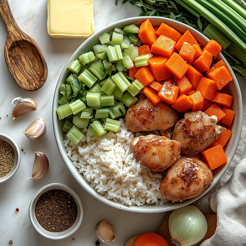 Gathering your ingredients is straightforward, and each plays a crucial role in making this dish sing. From the aromatic mirepoix that adds depth, to the seasoning that brings out the chicken’s best, every component is essential to achieving that perfect harmony of taste, texture, and color.