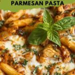- Garnish and Serve: Just before serving, sprinkle chopped fresh basil leaves on top if desired. Serve the chicken Parmesan pasta hot and enjoy the rich, melty cheese flavor.