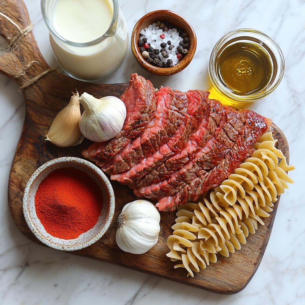 The beauty of this Paprika Steak Pasta: 35-Minute Comforting Delight Recipe lies in its simplicity, relying on a handful of ingredients that each bring a unique touch to the final dish. From the robust paprika that defines the flavor profile to the silky cream that lends luxurious texture, every item in this list is essential and enhances the overall experience.