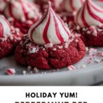 These Peppermint Red Velvet Blossoms are festive holiday cookies that combine the classic red velvet flavor with a delightful peppermint twist. Soft, chewy red velvet cookies are topped with crushed candy canes and finished with a melting Peppermint Hershey’s Kiss in the center, making them an irresistible treat perfect for the holiday season.