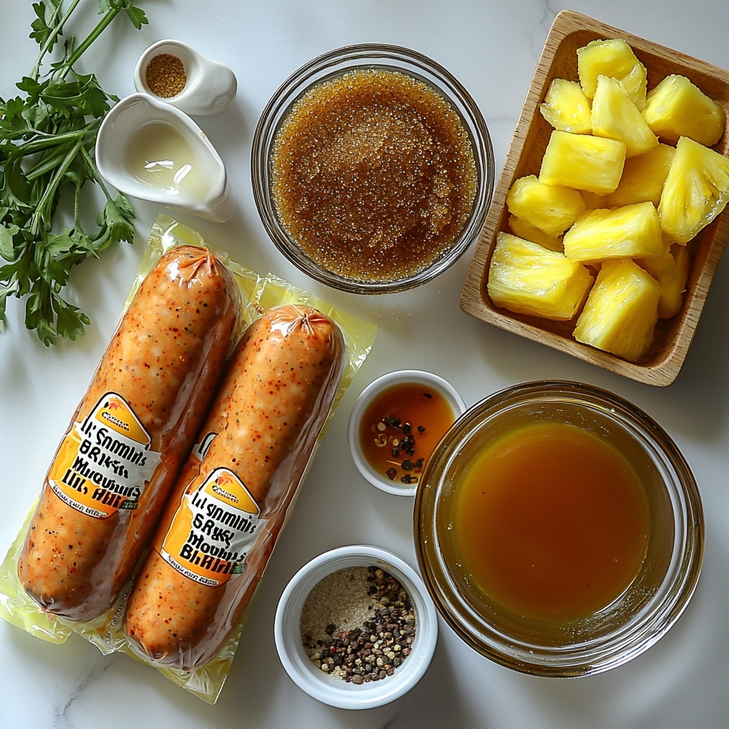 - Pineapple juice (1 cup): Brings a tropical brightness that tenderizes and flavors the sausages.