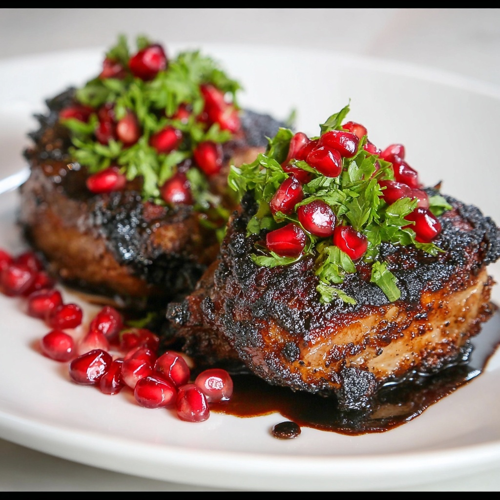 Pomegranate Glazed Lamb Loin Chops combine tender, bone-in lamb chops marinated in a refreshing mixture of orange and pomegranate juice with fresh mint, then seared and oven-baked for perfect juiciness. Finished with a sweet and tangy pomegranate glaze and garnished with fresh mint leaves and pomegranate seeds, this recipe offers a vibrant and flavorful dish ideal for a special dinner or entertaining guests.