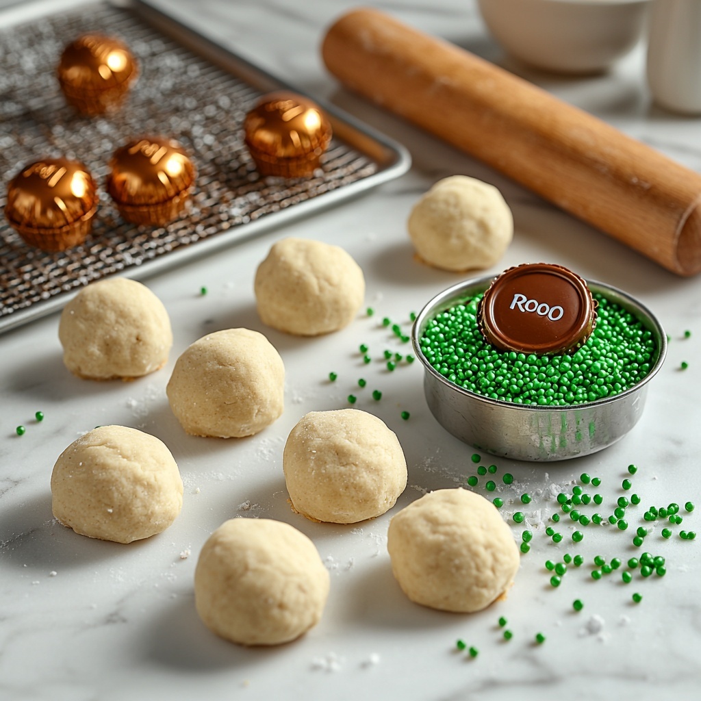 - Coat with Sprinkles: Roll each cookie dough ball in green sprinkles until fully coated to add color and texture.