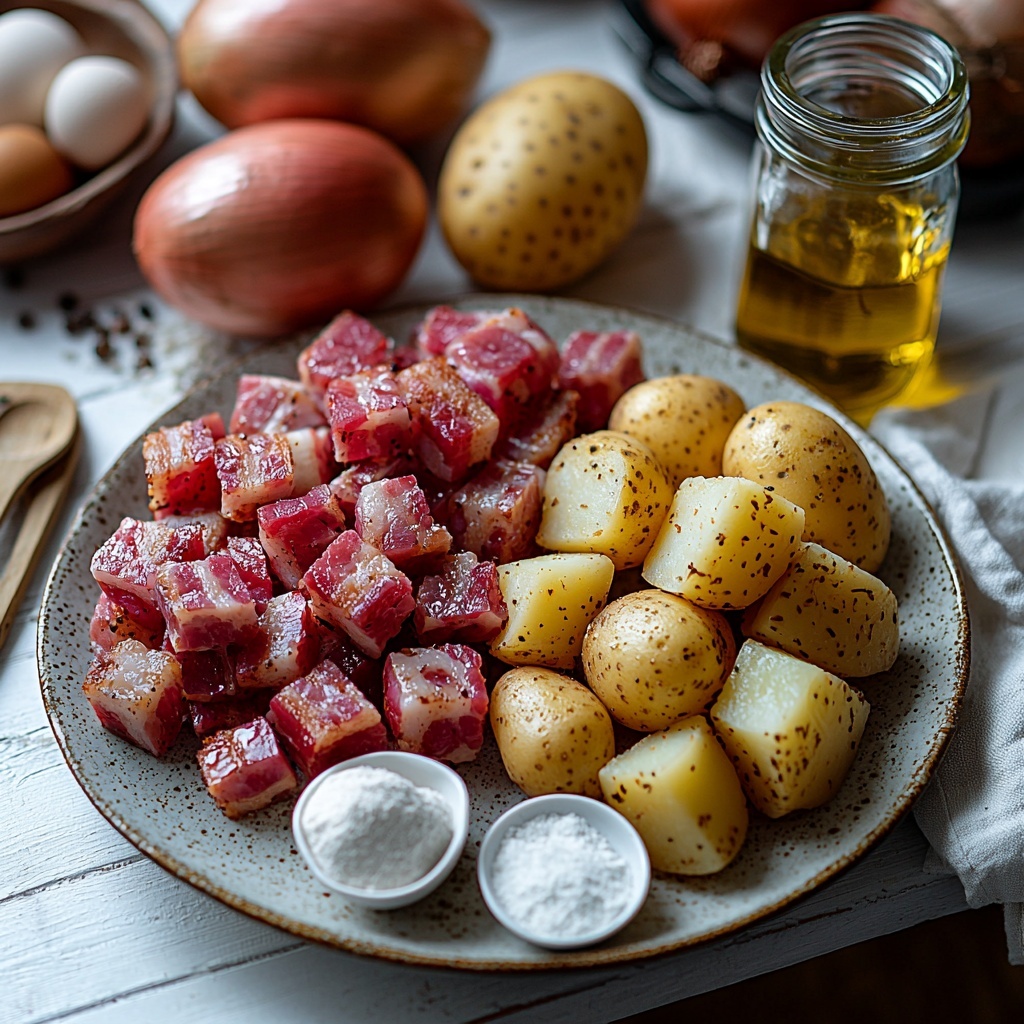 The magic of Potthucke lies in its simplicity. Each ingredient plays a vital role, blending texture, flavor, and color to create that perfect golden potato cake. Let’s take a look at what you’ll need to bring this traditional German delight to life.