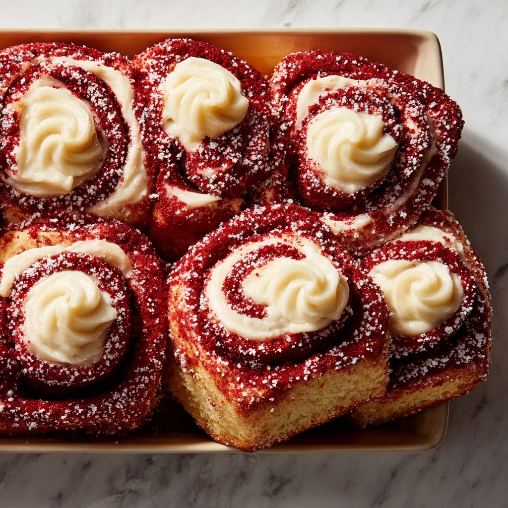 Pair your Red Velvet Cinnamon Rolls | The Perfect Christmas Morning Treat Recipe with fresh fruit salad, a warm cup of coffee or spiced hot chocolate, and even creamy scrambled eggs for a complete holiday brunch that everyone will rave about. The rolls’ sweetness complements savory sides beautifully, making your breakfast table merry and bright.