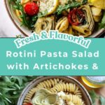 For a festive gathering, serve the Rotini Pasta Salad with Artichokes, Cherry Tomatoes, and Parmesan Recipe in individual mason jars, layering the salad for a charming visual effect. Alternatively, mound it in a large, colorful bowl garnished with lemon wedges on the side—a simple presentation that’s inviting and makes it easy for guests to serve themselves.