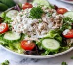 Grab a large salad bowl or serving platter and start with a base of mixed greens. Then, beautifully arrange the shredded chicken, cherry tomatoes, cucumber slices, red onion, shredded carrots, and avocado on top. This layering creates a vibrant, inviting plate that makes you eager to dig in.