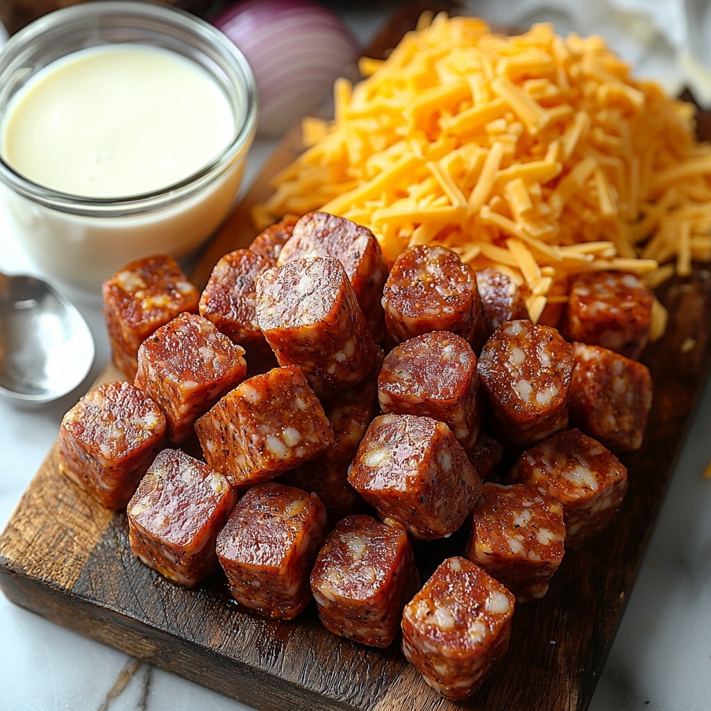 - ½ cup diced onion: Adds a subtle sweetness and crunch that balances the richness of the cheese and sausage.