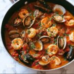 To brighten flavors and add fresh herbal notes, stir in the chopped parsley and basil just before serving. They provide a lovely contrast to the rich tomato and seafood flavors, completing this Seafood Cioppino Recipe with a pop of color and fragrance.
