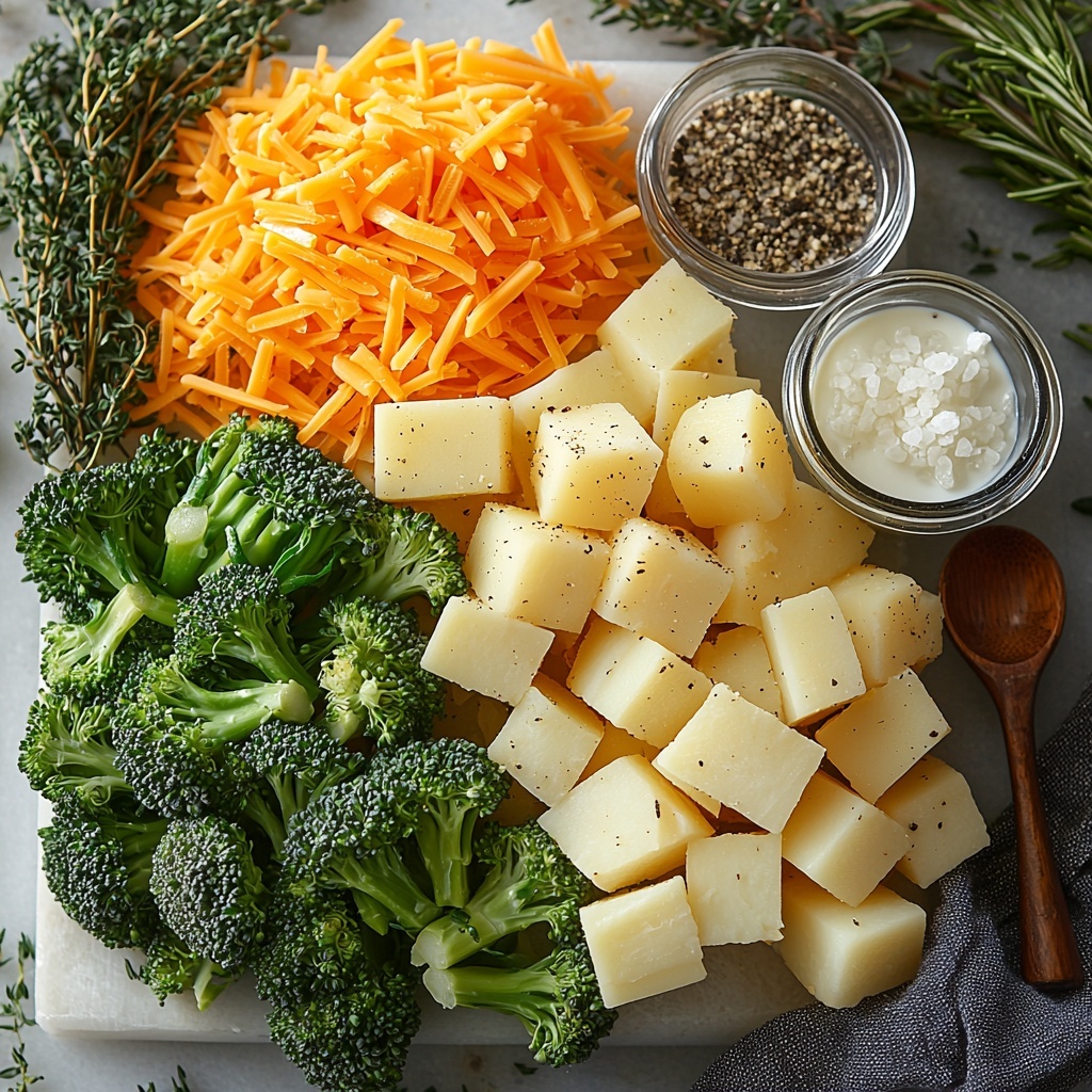 Start by peeling and cubing your potatoes into uniform pieces to ensure they cook evenly. Trim the broccoli into generous florets that will hold up nicely in the soup but still become tender. Chop the onion finely and mince the garlic cloves, as these aromatics will build the flavor base for your soup. Taking the time to prep thoughtfully here lays the groundwork for a bowl bursting with vibrant flavor.