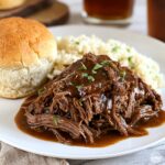 This recipe pairs wonderfully with classic fluffy mashed potatoes, which provide the perfect creamy base for the rich beef and sauce. Alternatively, wide egg noodles or buttered rice offer a comforting starch to complement the slow-cooked flavors.
