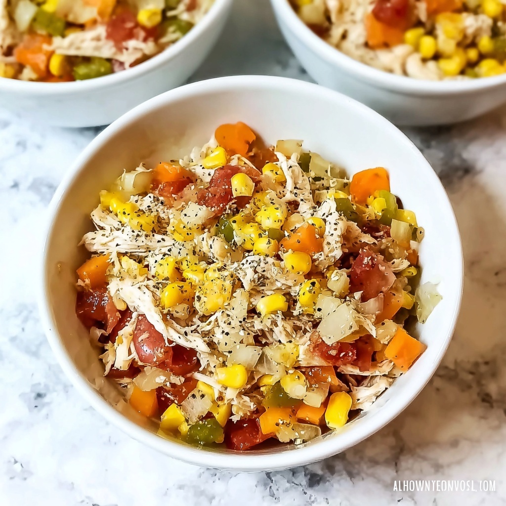 Enjoy these effortless Slow Cooker Dump Dinners featuring tender shredded chicken combined with a flavorful mix of diced tomatoes, onions, bell peppers, and corn. This comforting and easy-to-prepare meal is perfect for busy days and yields juicy, savory results with minimal hands-on time.