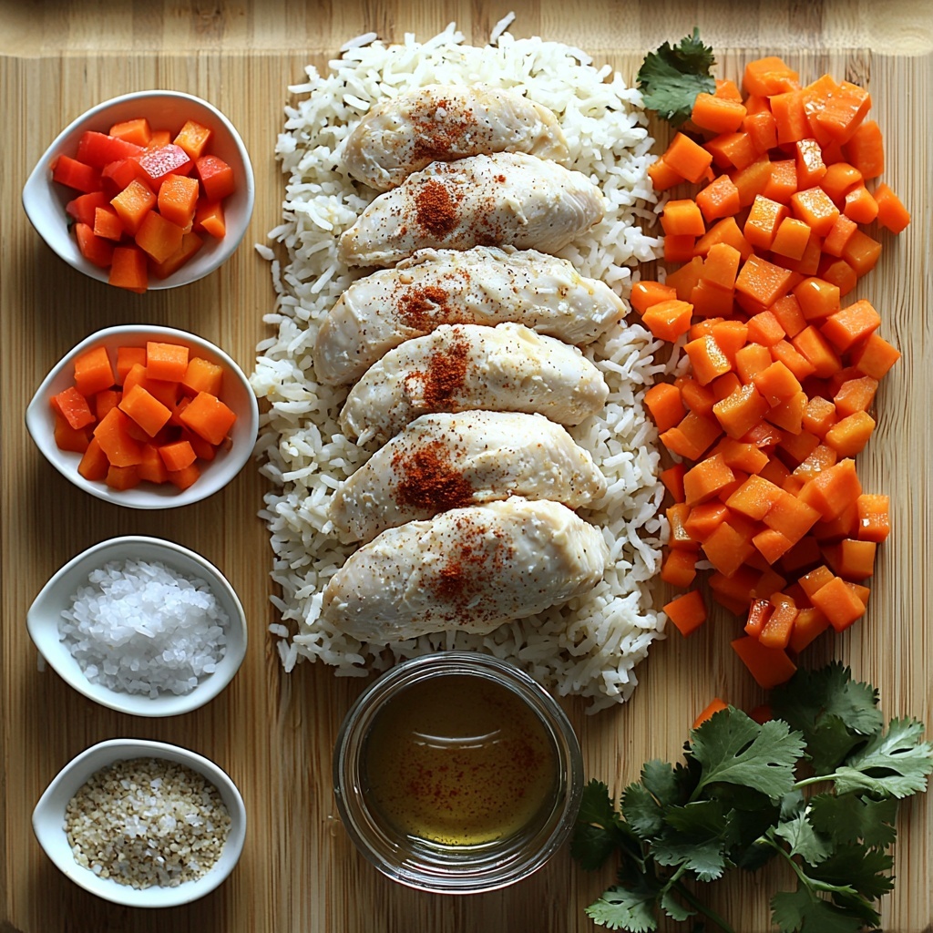 Lay a comforting bed of cooked rice in bowls, spoon the shredded chicken generously on top, then sprinkle with the diced vegetables to add crunch, freshness, and a pop of color. These bowls are as satisfying to look at as they are to eat.
