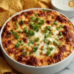 This spicy Buffalo Chicken Dip is a crowd-pleaser that disappears at every party. Combining shredded chicken with creamy cheese, zesty buffalo sauce, and tangy ranch dressing, it’s baked until bubbly and perfectly melted. Serve this savory dip with chips, celery sticks, or crackers for an irresistible appetizer.