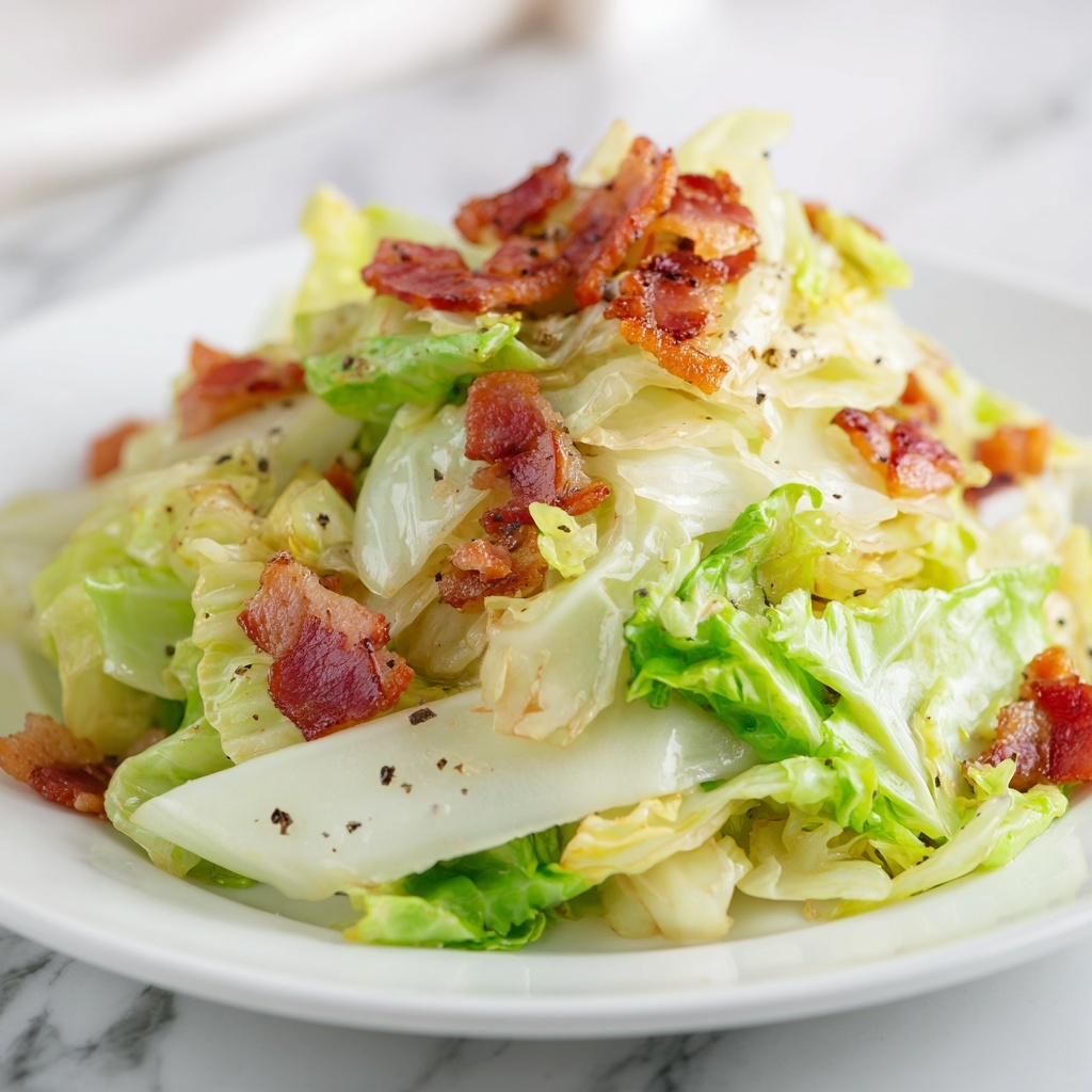 Celebrate St. Patrick’s Day with this flavorful sautéed cabbage dish featuring crispy bacon and tender onions. This easy-to-make recipe brings a delicious twist to traditional cabbage, combining smoky bacon, aromatic garlic, and a touch of olive oil for a savory side dish that pairs perfectly with any meal.