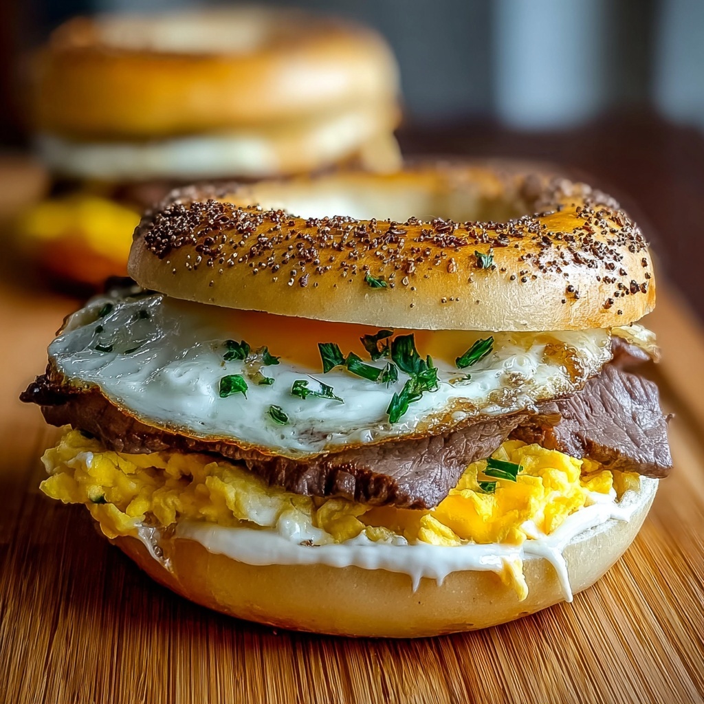 Cut your Steak Egg Cheese Bagel Sandwich Recipe in half diagonally for a classic diner-style look, or stack multiple mini sandwiches on a platter to impress brunch guests. Wrapping them in parchment with a colorful twine makes for a charming grab-and-go meal option.