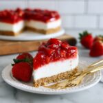 Top your Strawberry Cheesecake Recipe with extra fresh strawberries for that eye-catching pop of color and freshness. A light dusting of powdered sugar or a few mint leaves can also add a sophisticated touch to each slice, making it look as good as it tastes.