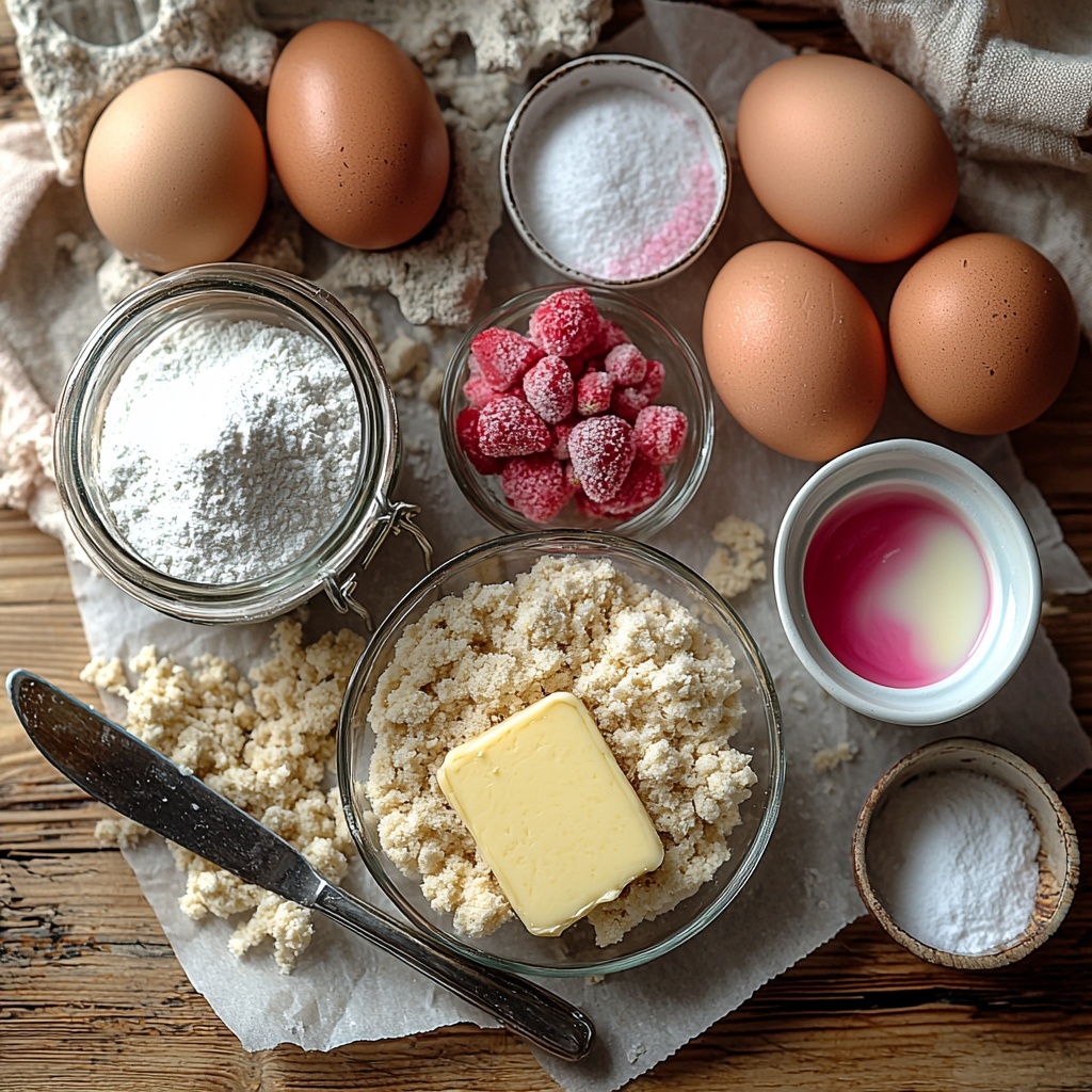 This recipe’s magic starts with simple, pantry-friendly ingredients that work together to create a cookie that’s soft, sweet, and perfectly balanced. Each component has its role from building the dough to creating that iconic glossy glaze and the crunchy topping that ties it all together.