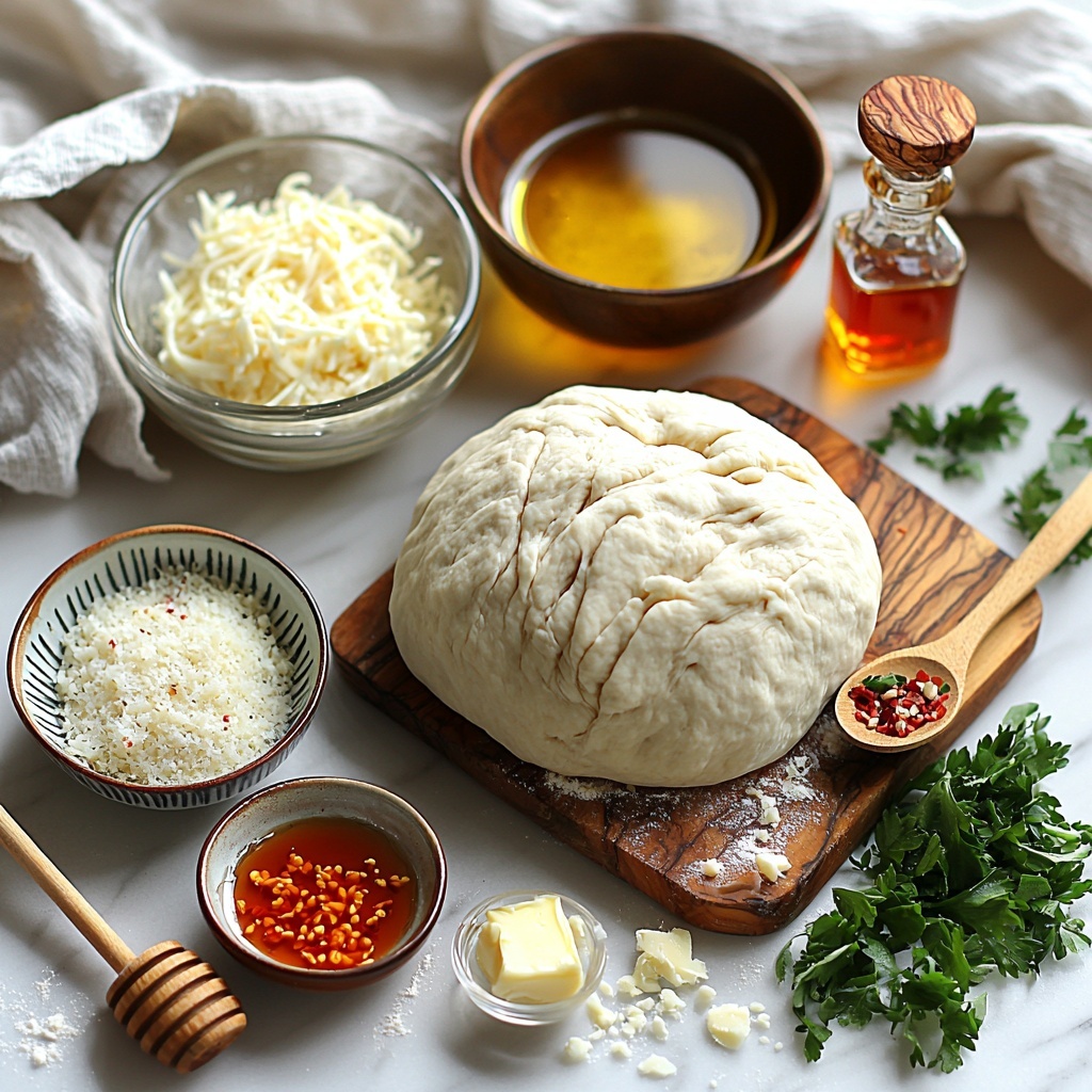 The magic of this Sweet Spicy Hot Honey Garlic Pizza Recipe lies in its simple, thoughtfully combined ingredients. Each one plays a crucial role in building layers of taste and texture that marry perfectly in the final bake.