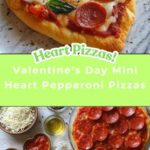 Celebrate Valentine’s Day with these adorable mini heart-shaped pizzas featuring a crispy crust, tangy tomato sauce, melted mozzarella cheese, and savory pepperoni, finished with fresh basil and aromatic oregano.