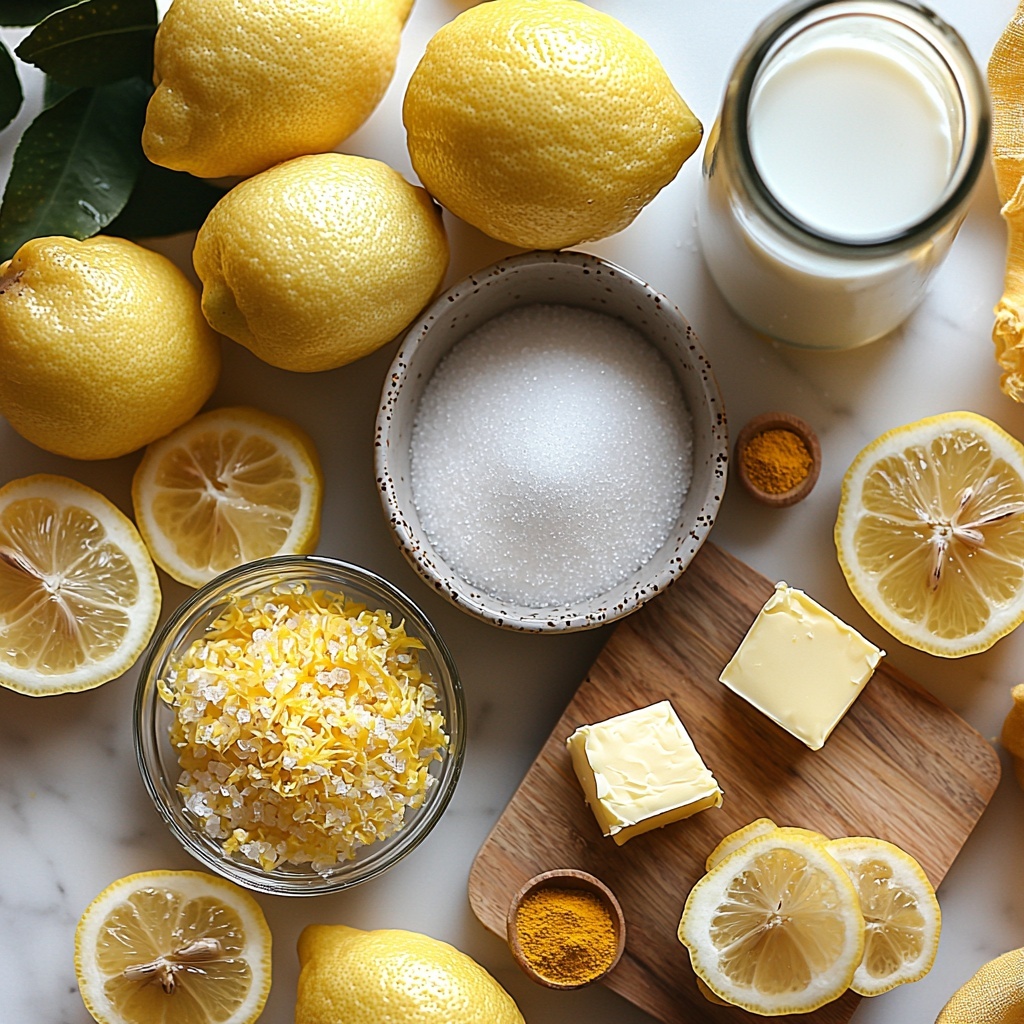 This Vegan Lemon Curd Recipe relies on straightforward, pantry-friendly ingredients—each chosen to create the perfect balance of tartness, sweetness, and creamy texture. From fresh lemon zest to the subtle thickness of cornstarch and the richness of vegan butter, every element plays a crucial role in the final velvety curd.