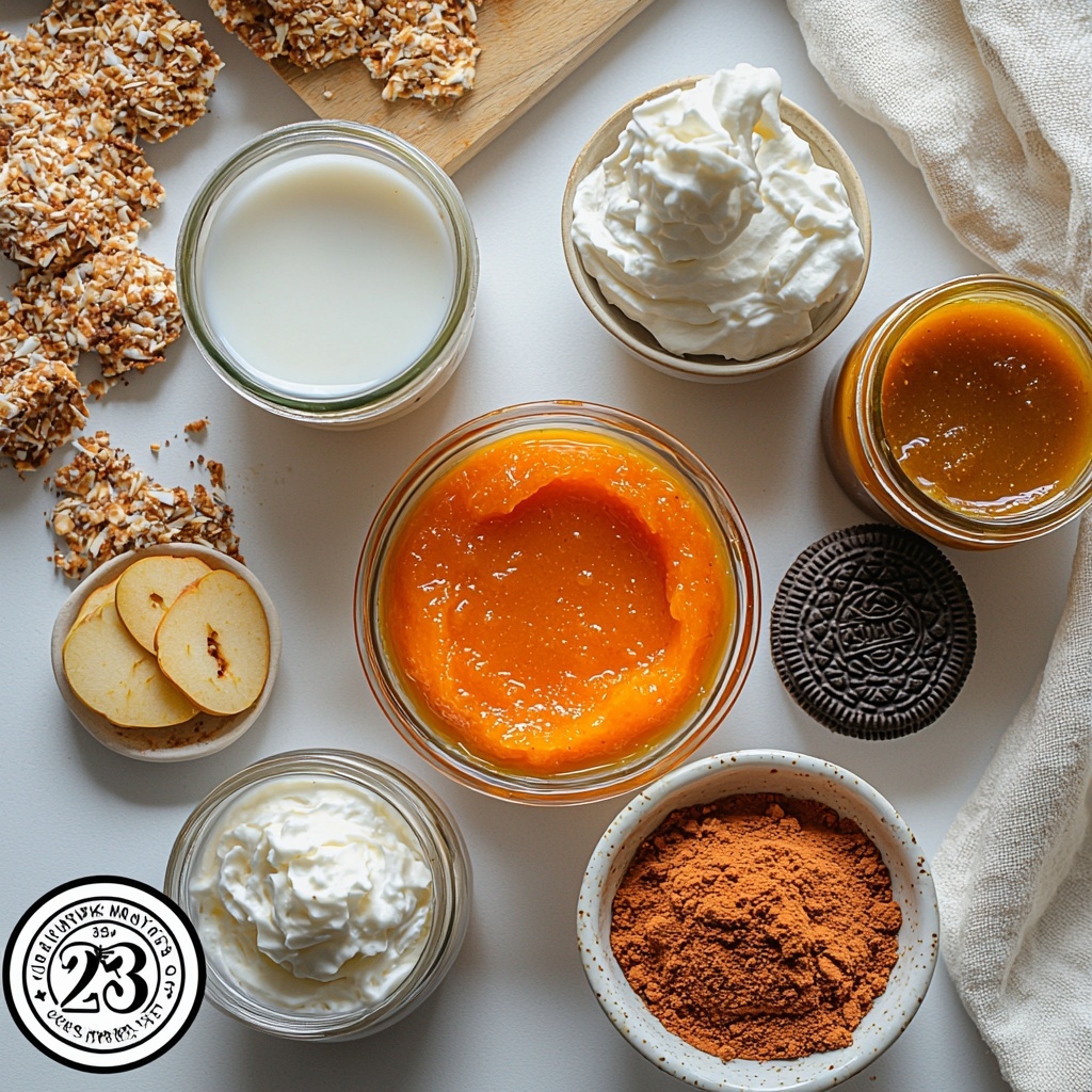 The ingredients for this Vegan Pumpkin Pie Mocktail Recipe are wonderfully simple but essential to achieve that rich, creamy texture and signature fall flavor. Each component combines to create a perfect balance of sweetness, spice, and smoothness that makes this drink utterly irresistible.