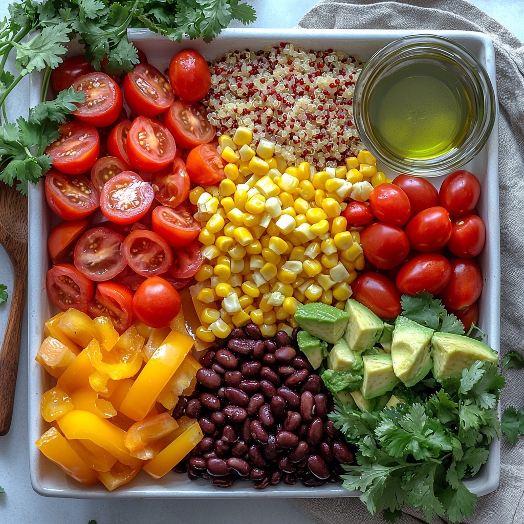 Here’s a lineup of simple yet essential ingredients that make the Vibrant Tex Mex Quinoa Salad Recipe truly shine. Each component adds something unique—whether it’s texture, color, or boldness—that balances perfectly for a fresh and flavorful dish.