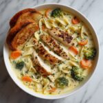 This White Chicken Lasagna Soup is a comforting and creamy dish that combines tender chicken, fresh vegetables, and broken lasagna noodles in a flavorful broth enriched with Parmesan cheese. With a blend of aromatic herbs and a smooth roux base, it’s a perfect one-pot meal ideal for cozy dinners and easy entertaining.