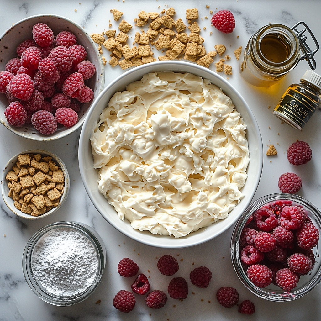 The magic of White Chocolate Raspberry Cheesecake Balls: A Decadent Dessert Recipe You’ll Love Recipe lies in its simplicity. Each ingredient plays a vital role in crafting that harmony of flavors and textures that make this dessert irresistible. From the creamy richness of cream cheese to the fresh tang of raspberries and the subtle crunch of graham crackers, every component is essential.